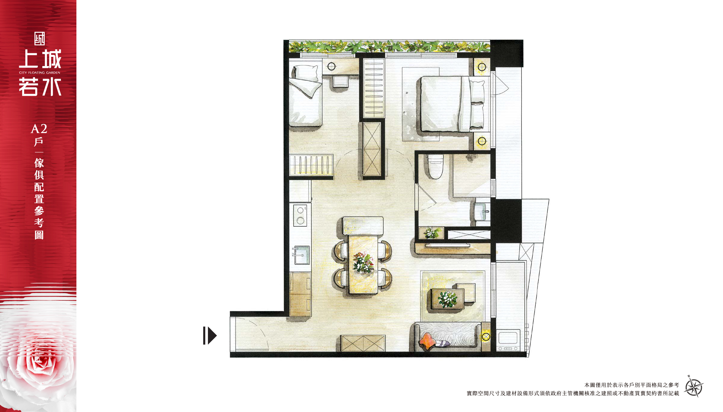 上城若水提供高坪效格局配置,從 12 坪方正格局的一房,到18 坪高坪效的小二房、24 坪舒適雙面採光的大二房皆有規劃。